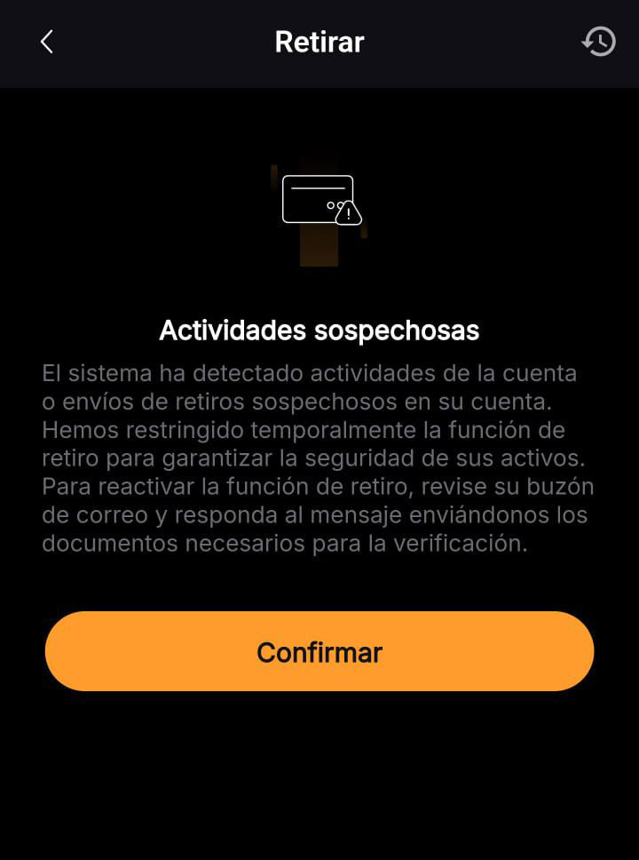 - Retiros y trading bloqueados.